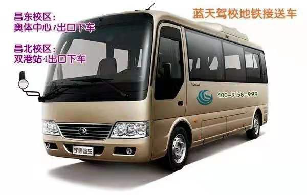 练车和考试,蓝天驾校提供校车免费接送。如果学员搭乘南昌地铁来我校,下地铁后,蓝天驾校也有专车免费接送。昌东校区在奥体中心下车,昌北校区在双港站下车。【具体最新时刻可以查阅蓝天驾校微信公众号-学车指南-学车服务-来校交通】